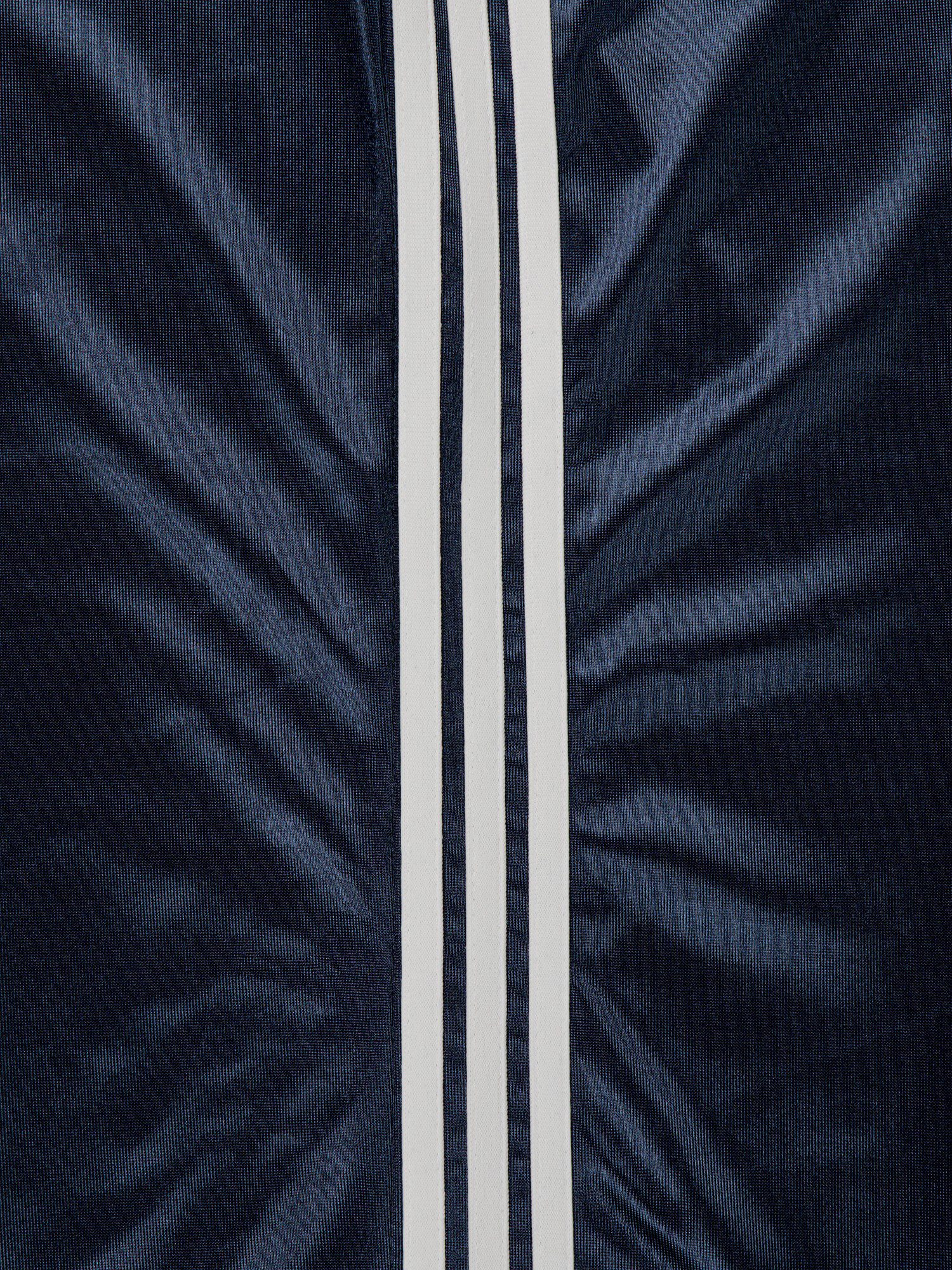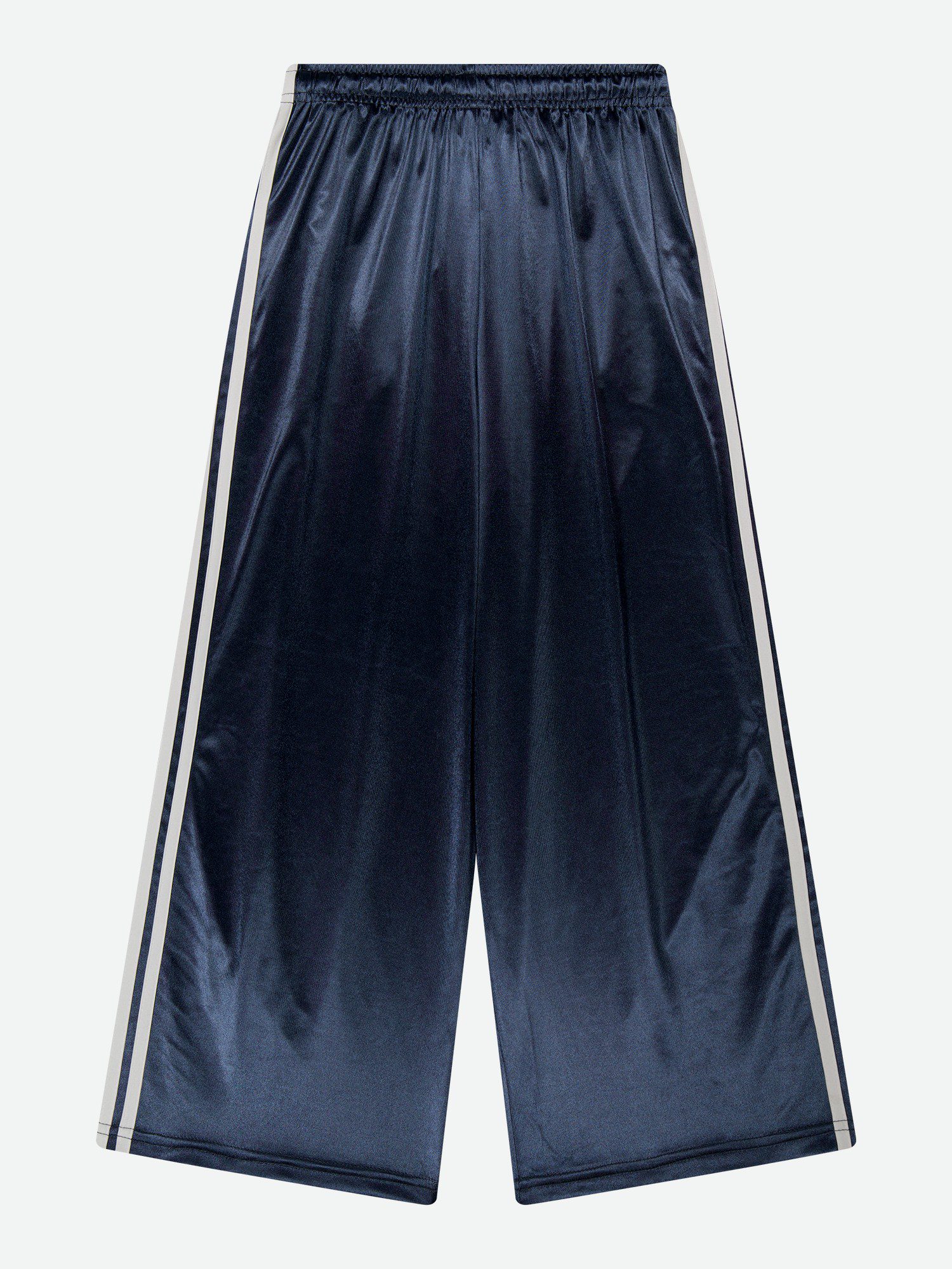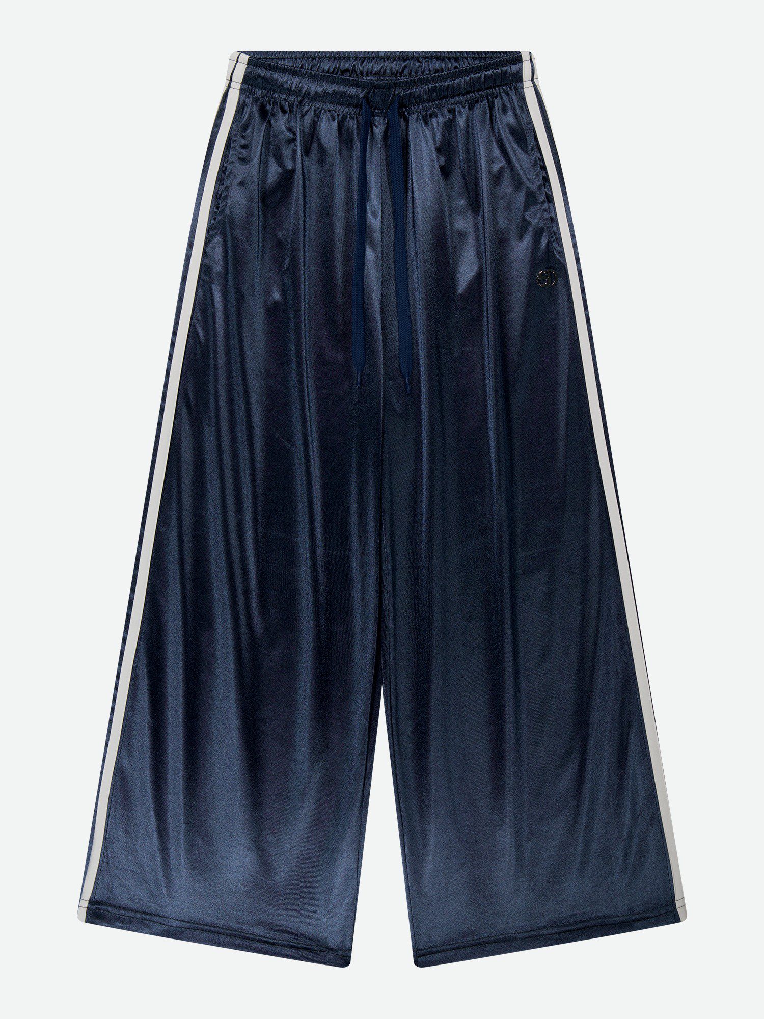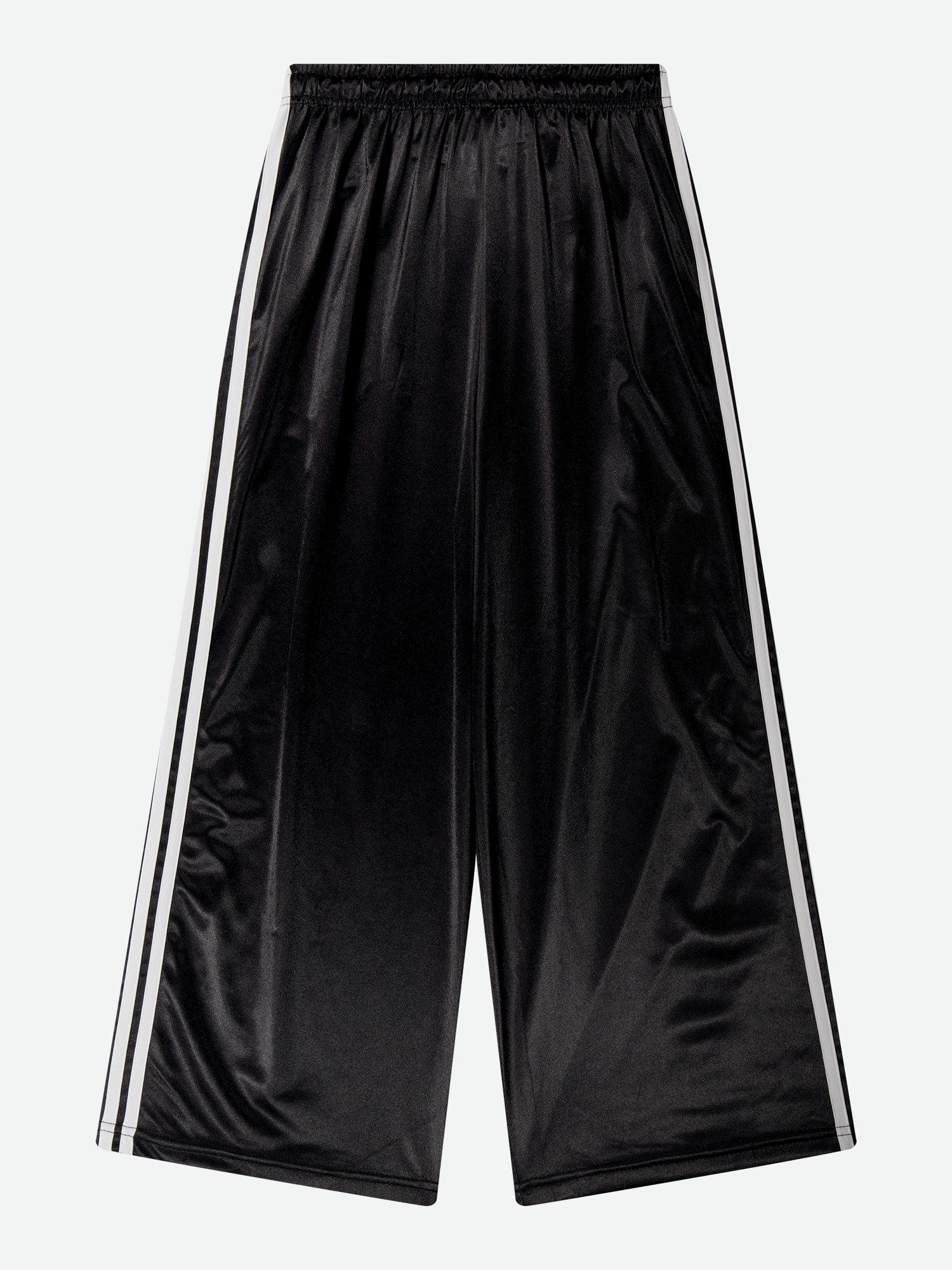 독특한 광택감이 느껴지는 소재로 한눈에 포인트가 되는 팬츠입니다. 사이드 두 줄 테이프 디테일이 스포티한 분위기를 더하고, 세인트돌 금속 장식이 완성도를 높였습니다. 여유 있는 와이드 핏으로 자연스럽게 떨어지며, 허리 밴딩으로 편안하게 착용할 수 있습니다. 허리 두 줄 스티치로 세탁 후에도 형태 변형을 줄였고, 가벼운 폴리 소재로 활동이 수월합니다.